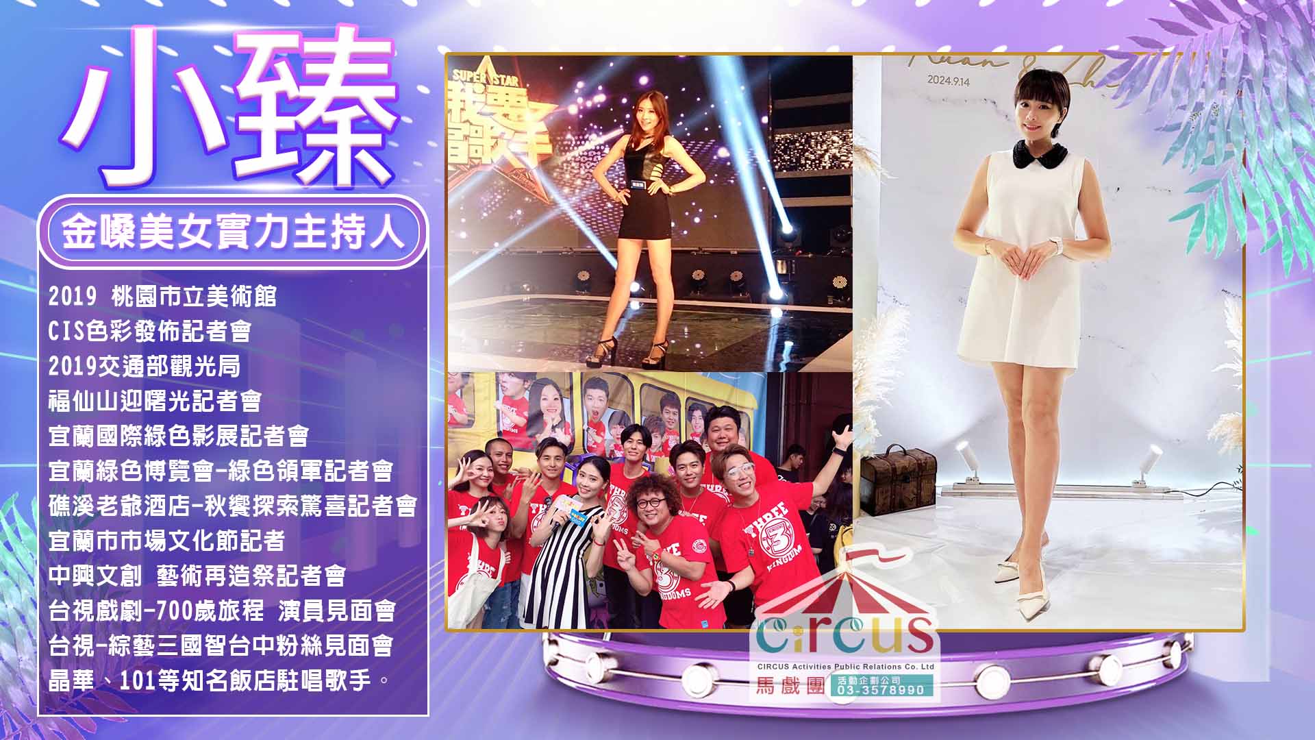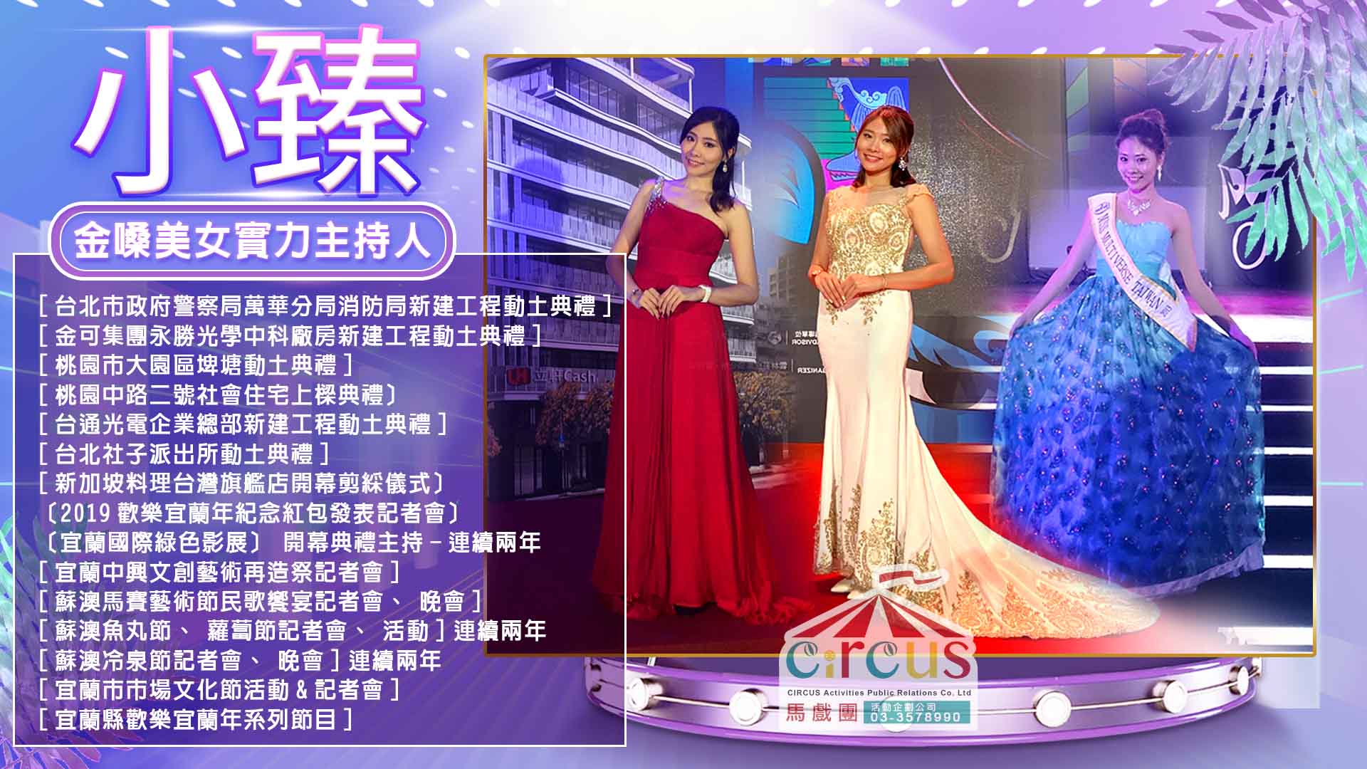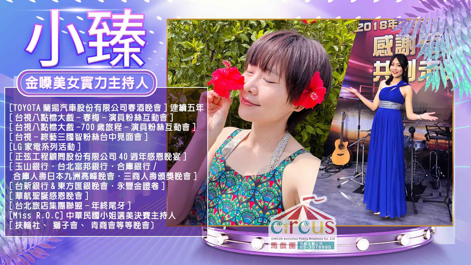 🔸 小臻是一位擁有穩健台風與自然親和力的活動主持人,累積多年實戰經驗,適合承接尾牙、婚禮、公司年會、表揚大會、新品發表會及各類大型晚宴活動主持需求。