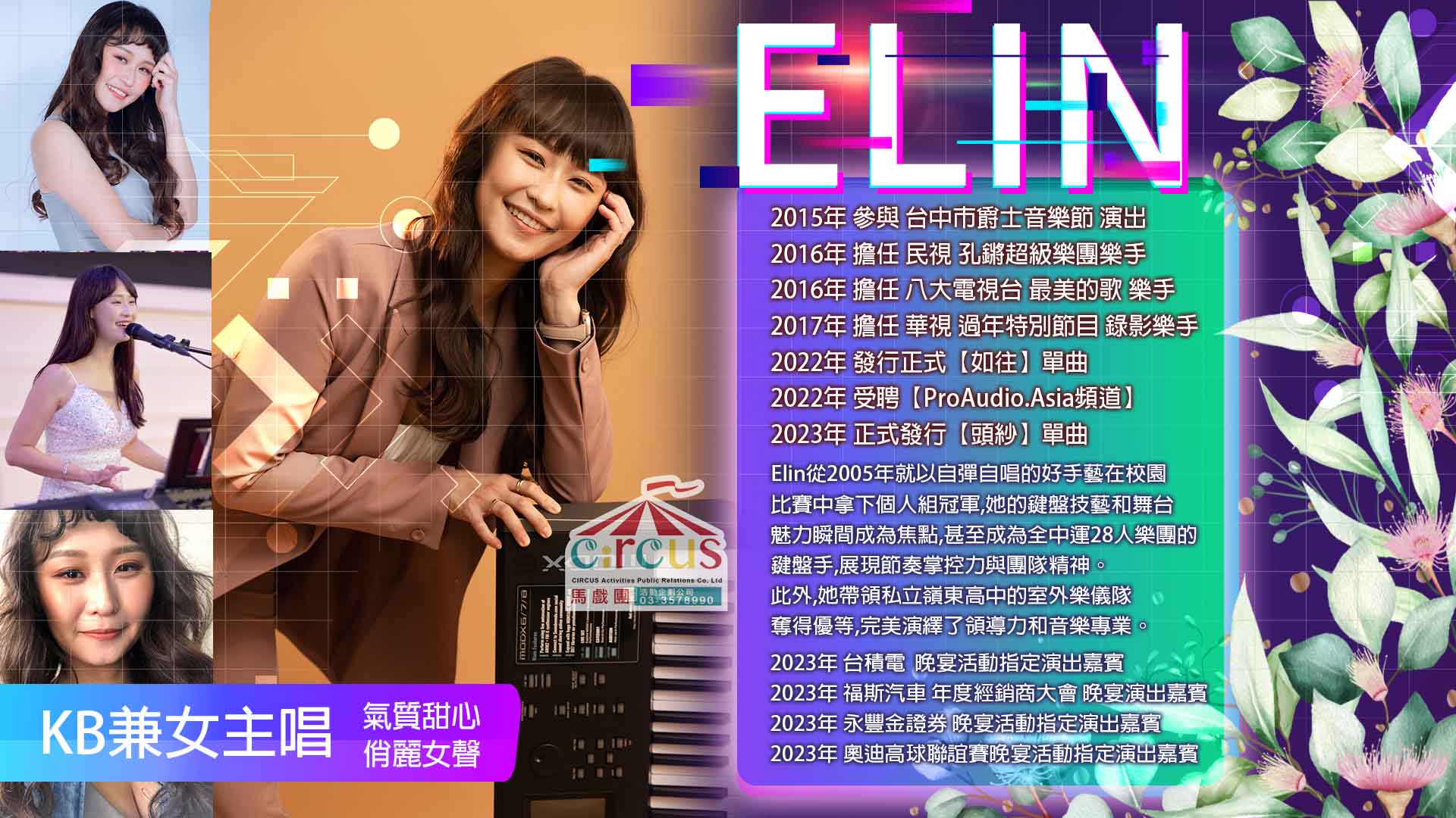 我們擁有多位美女電子琴主唱及男電子琴主唱,提供企業、品牌、中秋、耶誕節等節慶活動強力推薦的電子琴表演內容,從氣氛營造到視覺美感全面到位。