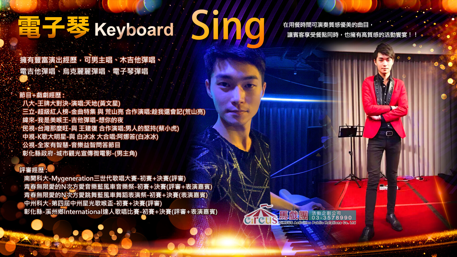 電子琴演奏融合主唱實力,打造出專屬於活動現場的完美節奏氛圍,不論是尾牙電子琴表演或婚禮電子琴演出,皆展現高度專業與感染力。