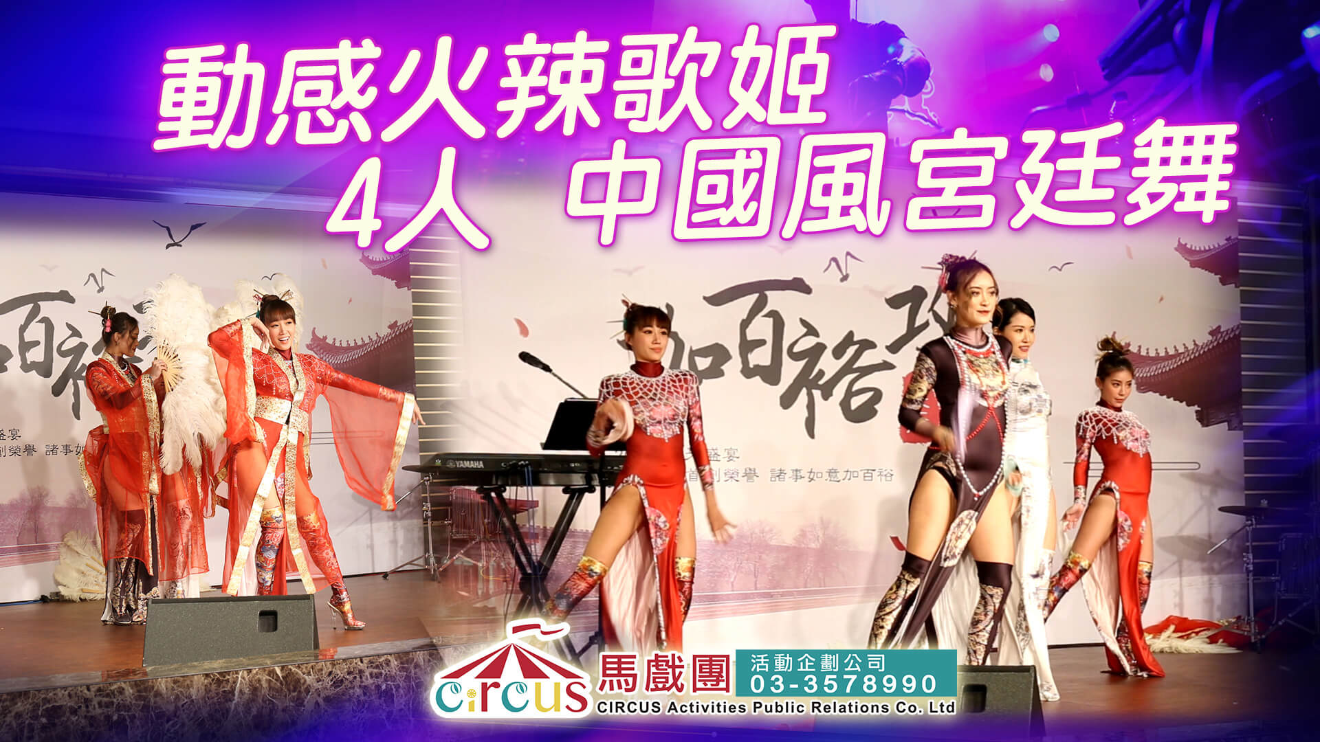 演出內容可依主題客製化調整,適合用於企業尾牙, 中式主題派對, 春酒晚宴, 品牌新品發表, 百貨百年慶典等多種場域。