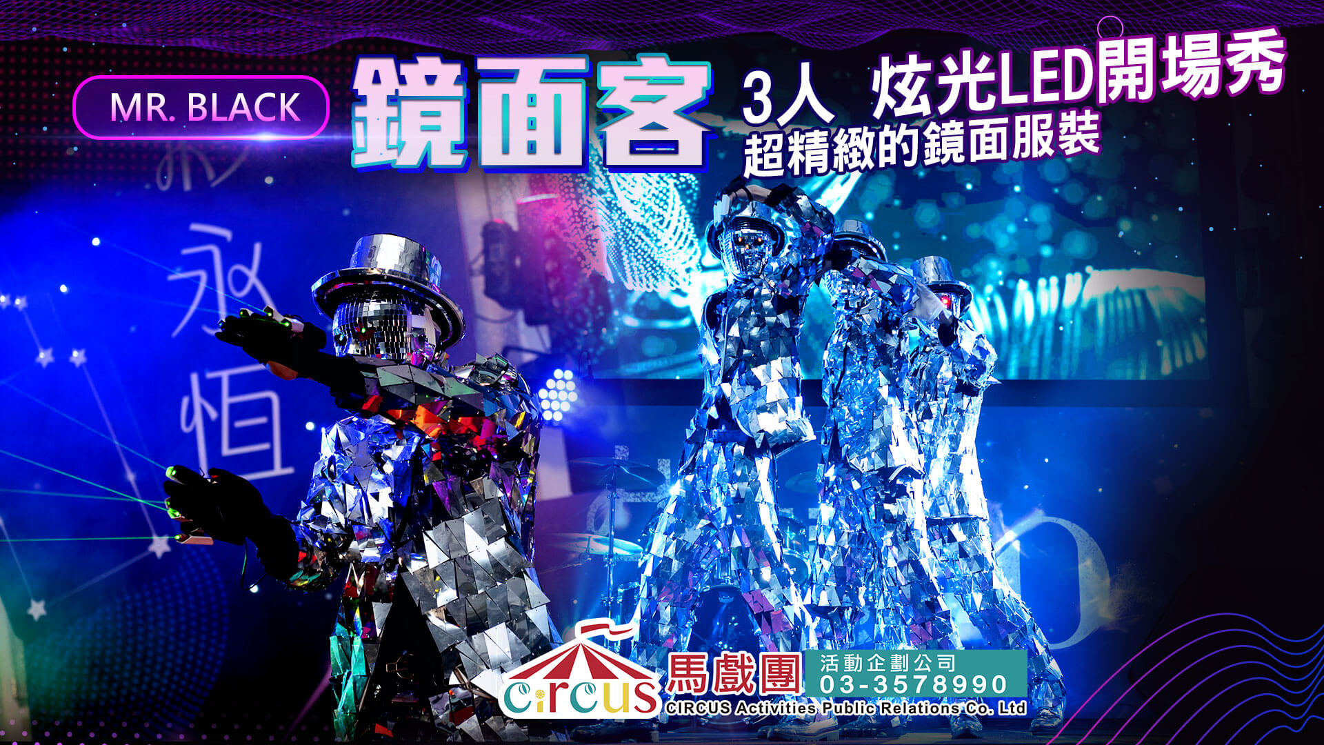 🔸 《超凡鏡面客》是一場融合鏡面造型與LED科技的專業舞蹈開場表演,適合尾牙晚會、企業年會、品牌發表、春酒聚會與開幕啟動儀式等大型活動。舞者身著反光鏡面服飾,手持內建LED雷射手套,結合高節奏編舞,呈現一場富有科技感與舞台張力的開場盛宴。