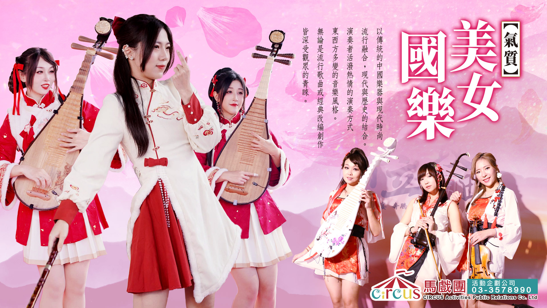 🔸本團體可依照需求調整編制,提供2人到8人的國樂團演出,無論是尾牙國樂表演、婚禮國樂表演,或是各類企業開幕活動,都能完美駕馭。尤其適合台北國樂表演、新竹國樂表演等地區的開幕典禮流程,專業的美女國樂團演出,搭配剪綵儀式規劃,更能為活動增添隆重氛圍。