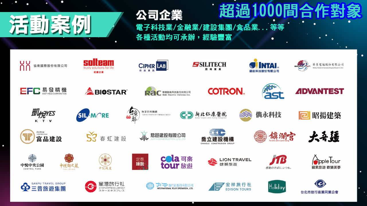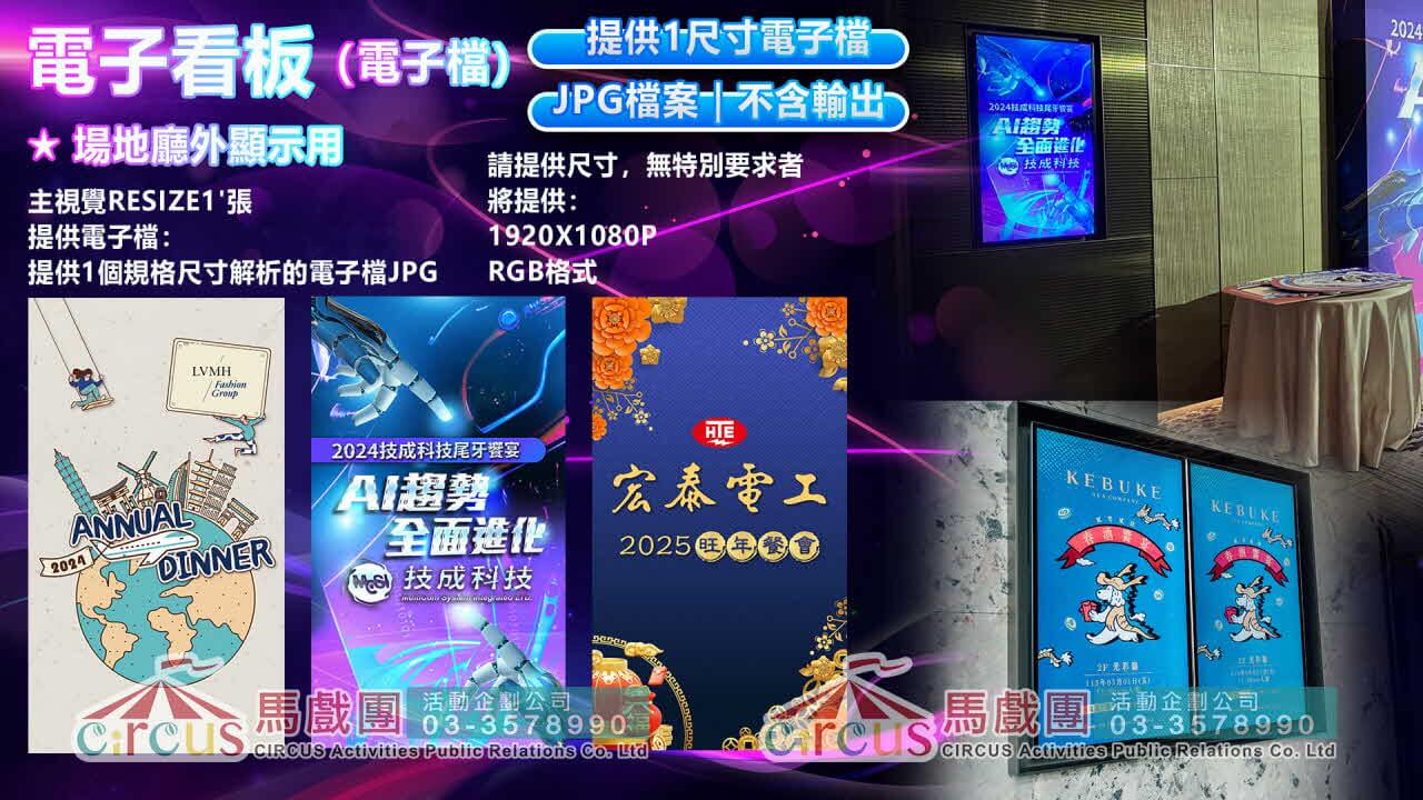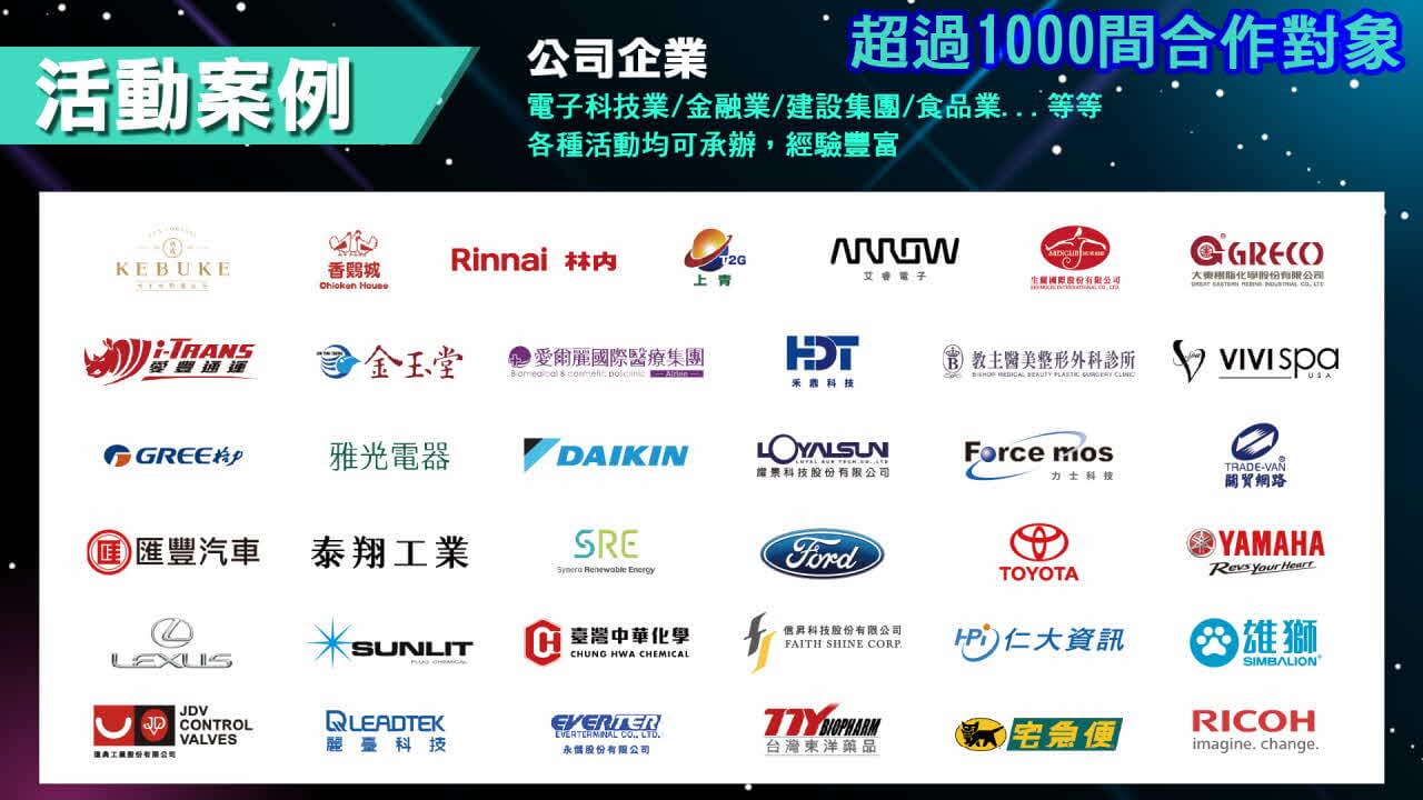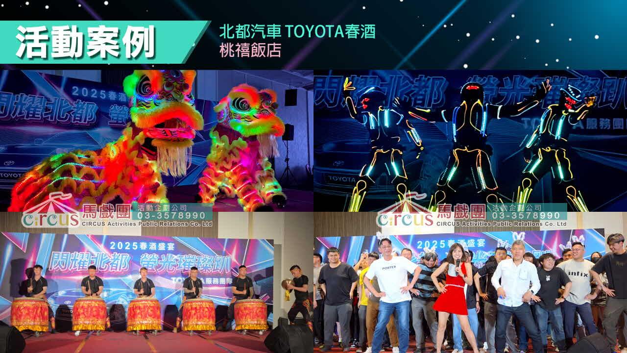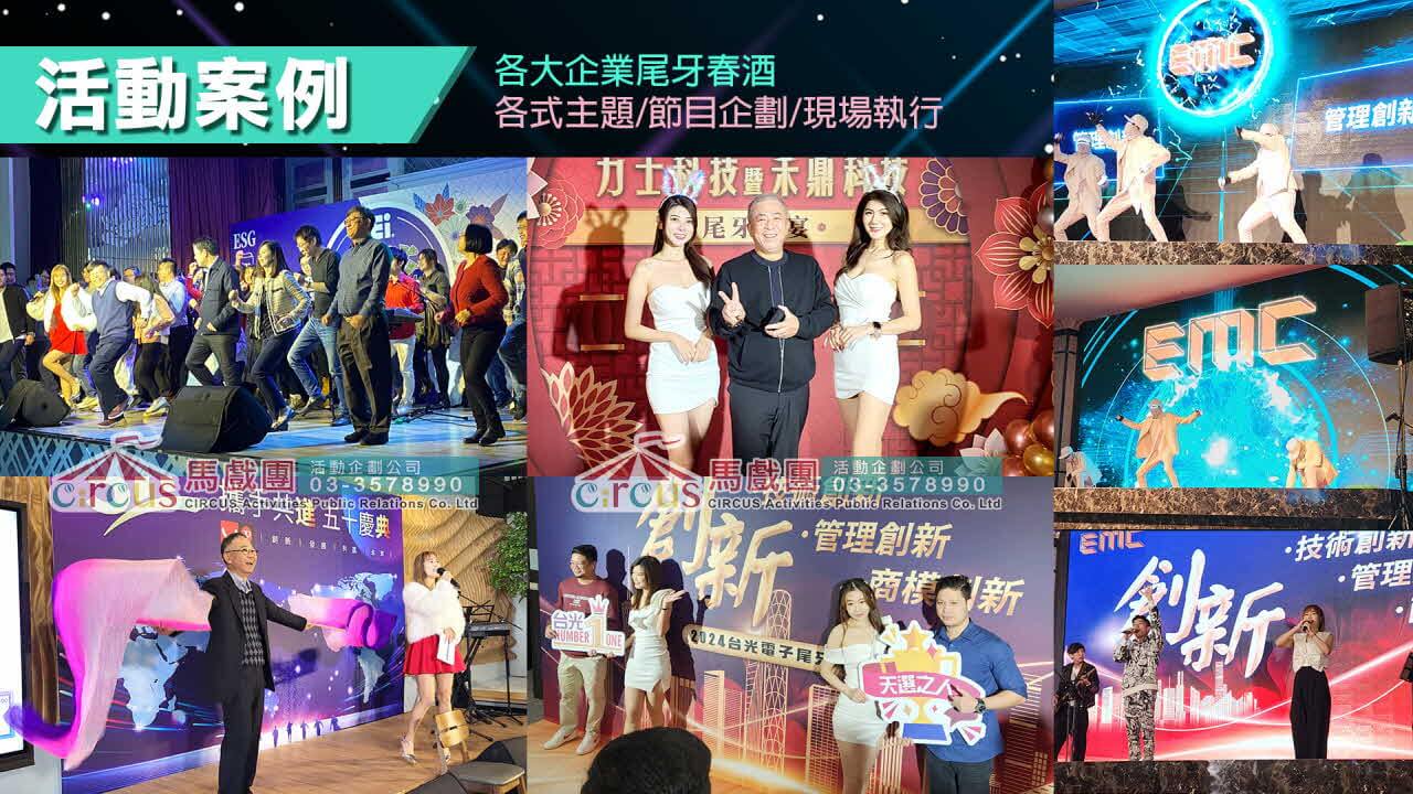 🔸 馬戲團活動企劃公司為全台企業量身打造春酒活動、尾牙晚宴、旺年會及企業年會等專業整合企劃,從節目規劃、主持人安排、表演推薦到現場執行,皆可提供高品質一條龍服務。