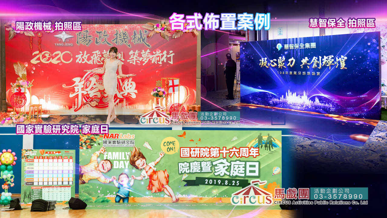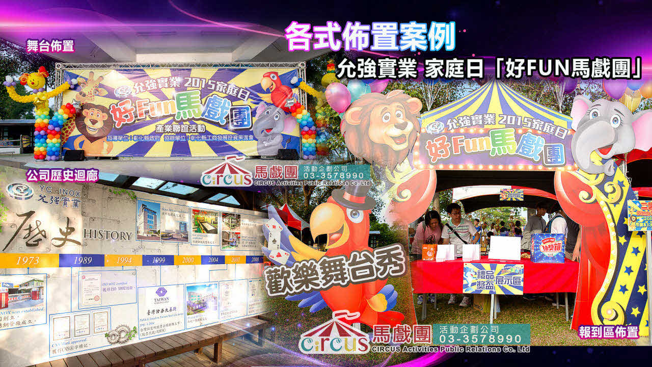 馬戲團活動企劃公司非常重視會場佈置,透過創意設計與佈置,打造一個獨一無二且難忘的活動體驗。以下是我們在會場佈置方面提供的服務: