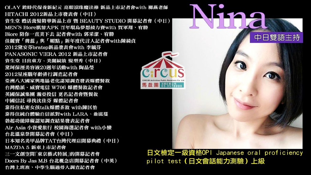 身高 165/體重48/三圍34D.25.35/語言:中(佳)、日(佳)、英(日常會話)/註:日文檢定一級資格 OPI Japanese oral proficiency pilot test(日文會話能力測驗)上級