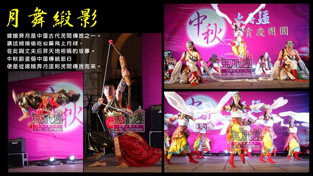 『月舞緞影』表演猶如嫦娥在月宮中翩翩起舞,以中國傳統舞蹈為基礎,展現了華麗而優雅的舞姿。舞者手持水袖,以柔美的舞步和旋轉展現出月光下綺麗的緞影,將觀眾帶入夢幻般的世界。月舞緞影表演將帶給觀眾一場極具中國風味的視覺盛宴。表演以古代民間傳說中的嫦娥奔月為主題,將嫦娥與后羿的故事娓娓道來。表演者身著華麗的服飾,在融合現代元素的舞台上優雅地舞動著水袖,配合著獨具特色的音樂,呈現出優美而高雅的姿態,彷彿置身於古代的仙境中。這樣的表演不僅展現了中國風舞蹈、民俗舞蹈的經典元素,同時蘊含了中國傳統文化的深厚底蘊,讓觀眾在欣賞演出的同時,感受到文化的魅力和力量。這樣的表演適合在中秋節、開幕式、節慶活動、晚會企劃、公司年會等各種場合演出,為活動增添獨具特色的節目。