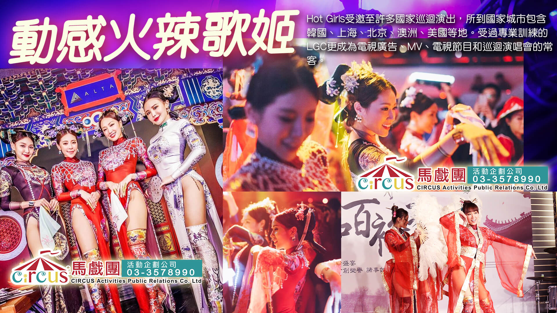 演出內容可依主題客製化調整,適合用於企業尾牙, 中式主題派對, 春酒晚宴, 品牌新品發表, 百貨百年慶典等多種場域。